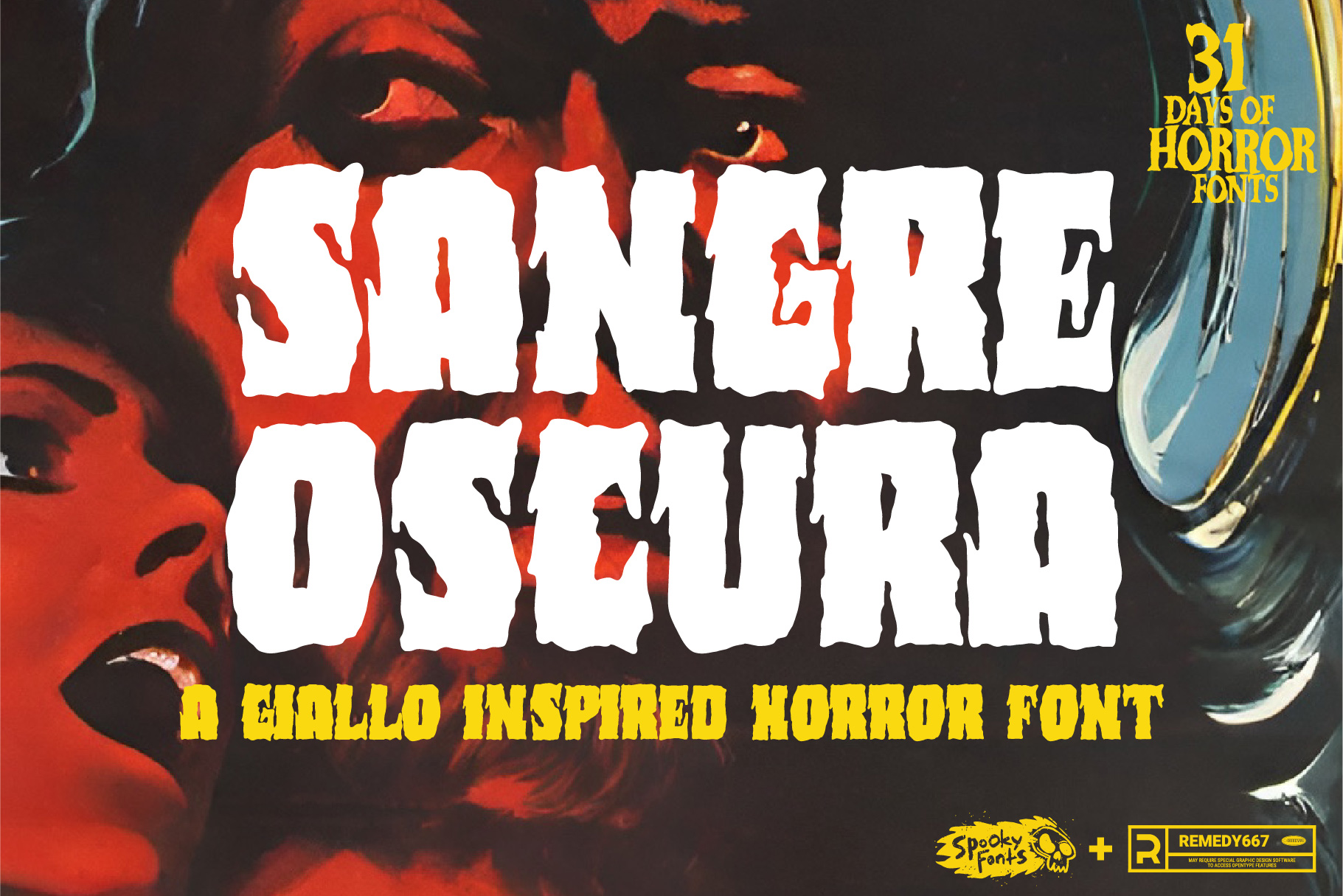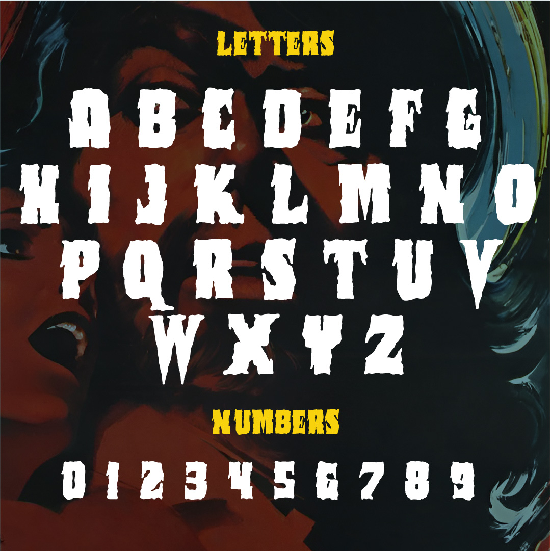 Introducing Sangre Oscura, a menacing typeface straight from the depths of vintage 70s foreign horror movies. This eerie and captivating font will transport your designs into a world of chilling dread. With its spine-chilling curves and hauntingly beautiful serifs, Sangre Oscura is perfect for adding a touch of macabre to your posters, album covers, book titles, or any other creative project. Prepare to unleash the dark magic of horror onto your designs!