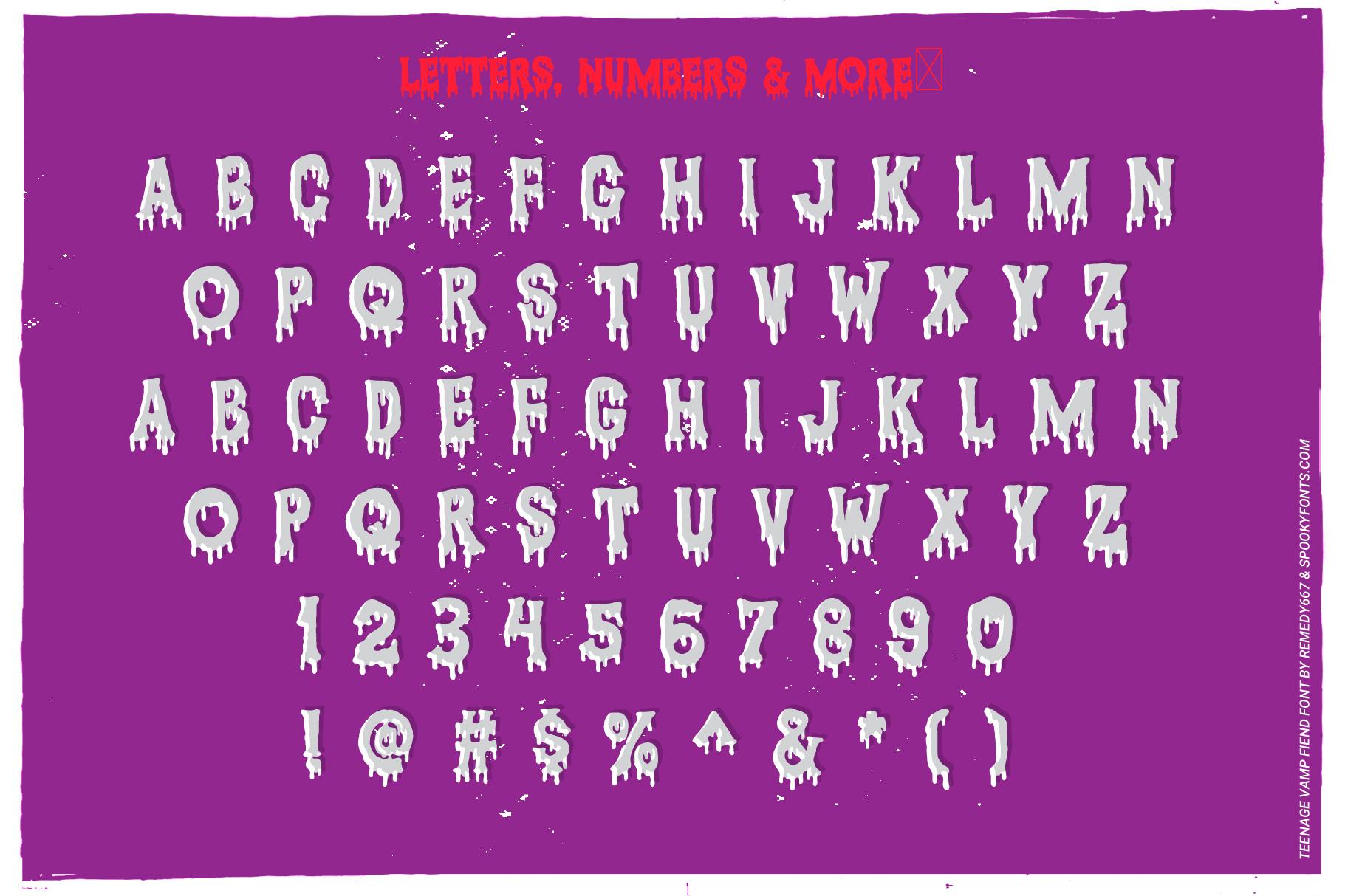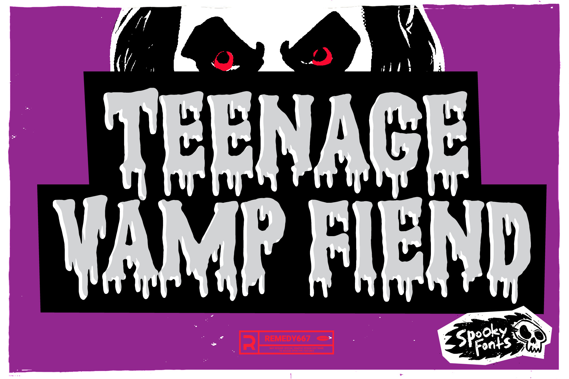 Teenage Vamp Fiend—a horror-inspired typeface dripping with style, ideal for all your vampire-related designs! This unique font is finely crafted to create a spooky aura. For all of your vampire needs, this font is perfect for creating spooky titles and text. Its bold characters will bring a sense of dread and unease to any text that you add it too. Create eerie messages that will send shivers down anyone’s spine with Teenage Vamp Fiend.